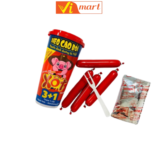 - ສ່ວນປະກອບ: ໄສ້ກອກ (ຊີ້ນ - ຫມູ, ໄກ່ - 383g/kg, ນ້ໍາ, ທາດຄົງທີ (1414, 451i), ທາດໂປຼຕີນຈາກຖົ່ວເຫຼືອງ, ນ້ໍາຕານ, ເກືອ, ຜົງຜັກທຽມ, ເພີ່ມລົດຊາດ (621)